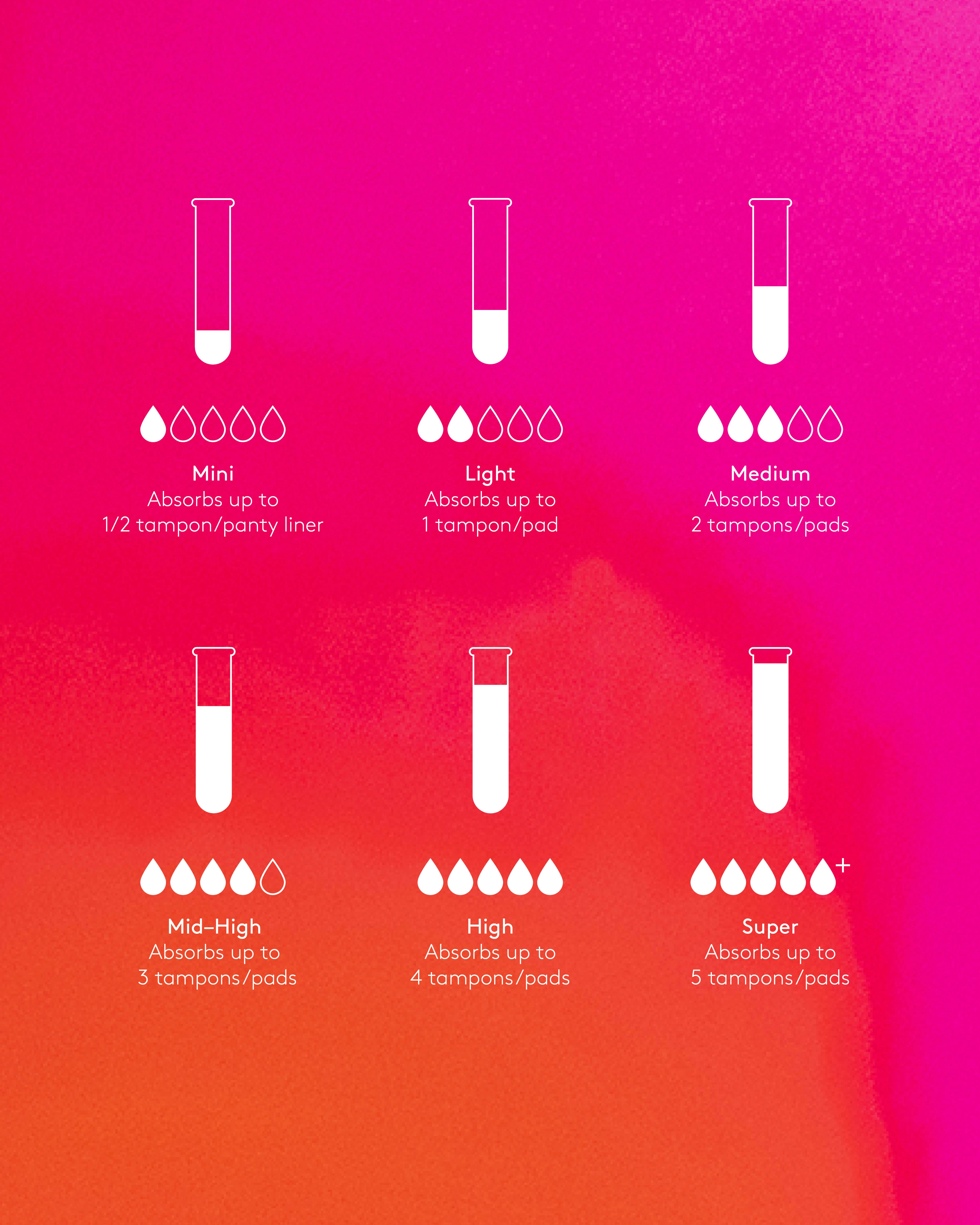 Din kropp är unik, och det är din mens också. Därför kommer våra menstrosor i sex olika absorptionsnivåer. Så att du kan hitta den perfekta för din mens.
