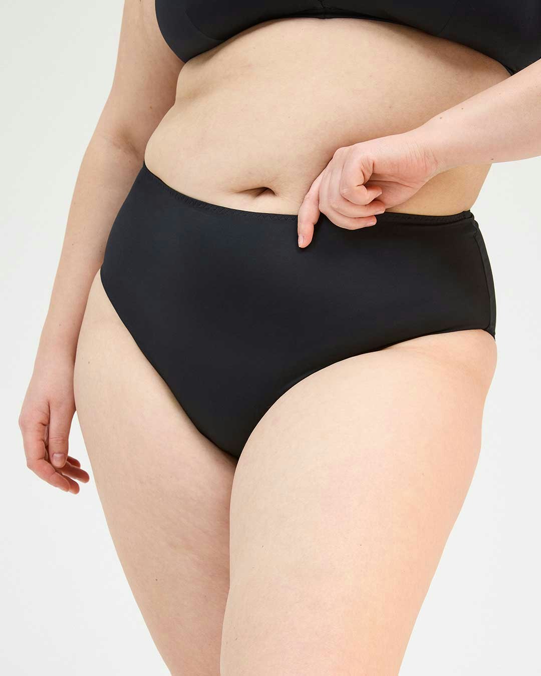 Ja, det kan du. Badetøyet med mensbeskyttelse er ideelt for dager med lettere til moderat menstruasjon. Kilen som er designet for å absorbere mensen og andre kroppsvæsker, absorberer også vann. Etter svømmeturen skyller du badetøyet frem til vannet er klart og presser forsiktig ut overflødig vann før du bruker det igjen og igjen. Hvis du har hatt det på deg lenge før du svømmer, foreslår vi at du også skyller det før du hopper i vannet.