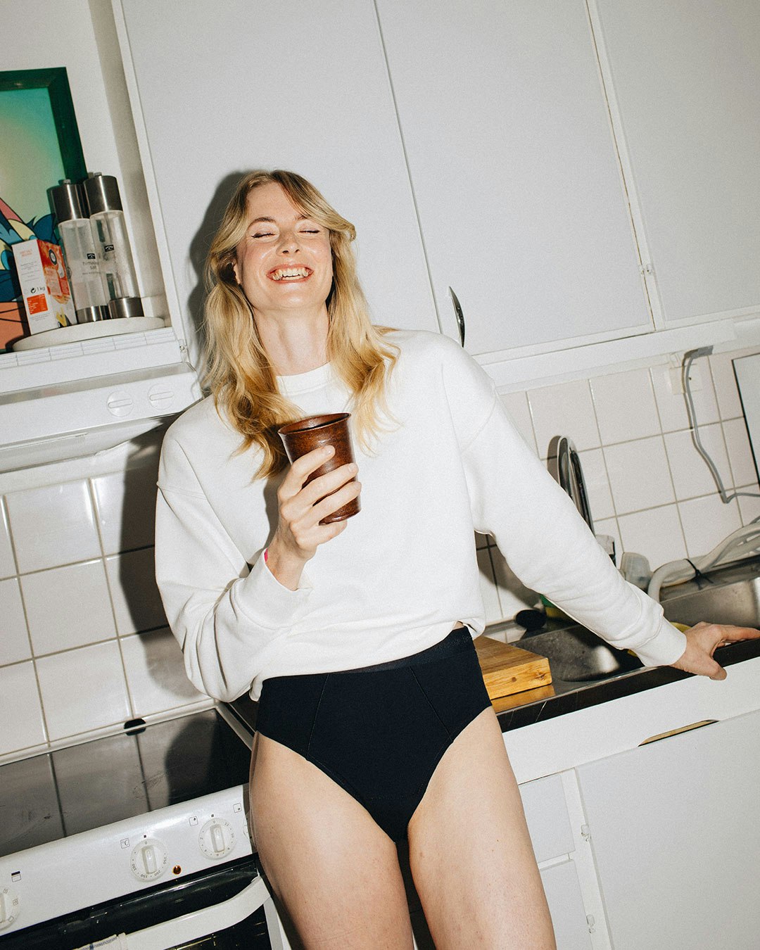 Me suunnittelemme tuotteita naisten todellisiin tarpeisiin tieteen ja innovaation avulla. Kuten kuukautisalushousut. Ne ovat patentoidulla teknologialla valmistettuja uudelleenkäytettäviä kuukautissuojia, jotka imevät sisäänsä kuukautisveren, estävät ohivuotoja sekä epämiellyttäviä hajuja ja pitävät kosteuden poissa iholta. Ne on suunniteltu helpottamaan elämääsi kuukautisten aikana.